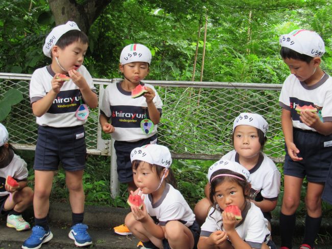 みんなでおいしいスイカを食べました。