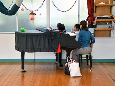 県内の他の幼稚園よりいち早く全教室にフラットピアノを設置しました。