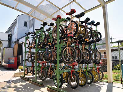 一輪車を52台新品に買い換えました。従来の一輪車が老朽化したために全台新品に買い換えました。軽やかに一輪車に乗れるようになりました。